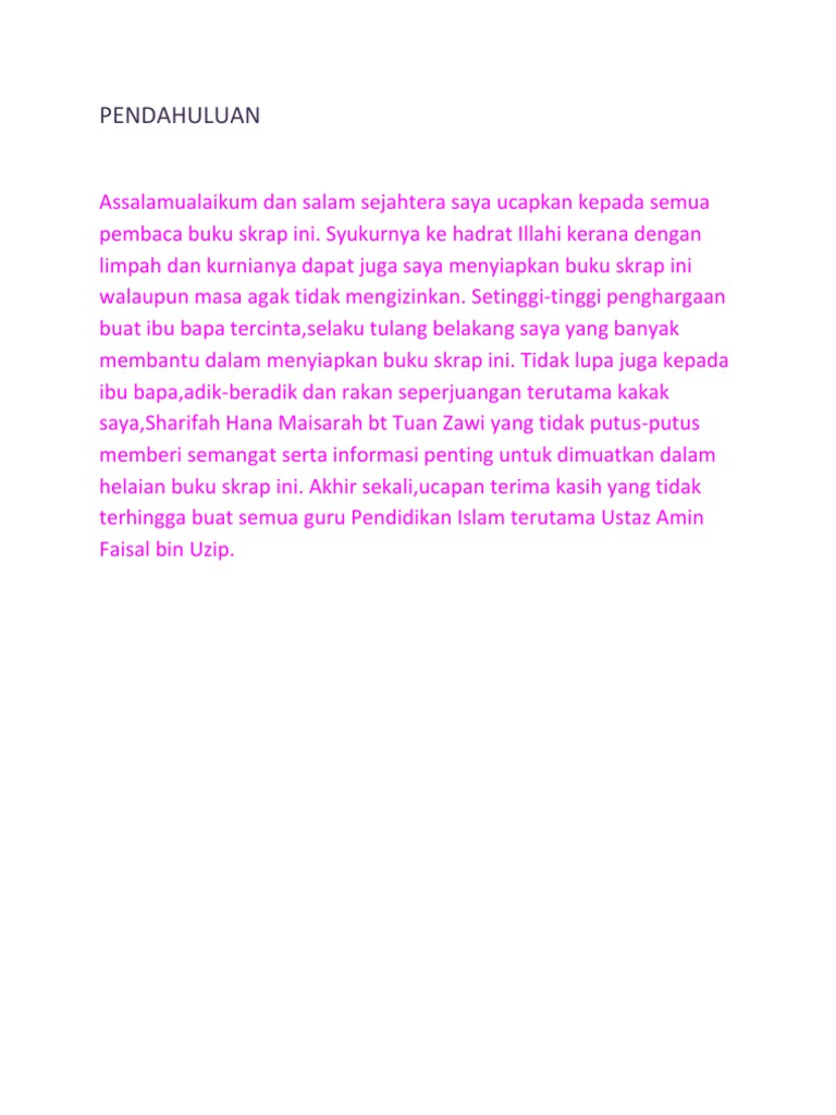 Contoh Penutup Untuk Buku Skrap Fontoh Otosection. PENDAHULUAN TUJUAN Buku skrap ini dihasilkan bagi menyempurnakan 15 daripada markah keseluruhan bagi subjek Pengajian Malaysia MPU 2113 untuk Program Diploma di Kolej Islam Antarabangsa Sultan Ismail Petra KIAS Nilam. Contoh Penutup Folio - Contoh Pendahuluan Untuk Buku Skrap Jawkosa Otosection.